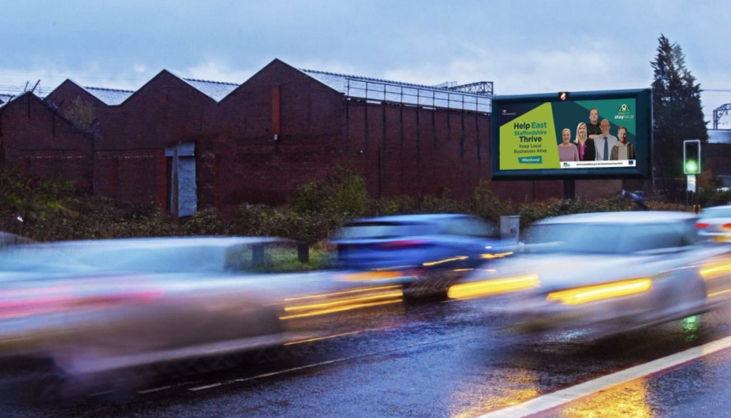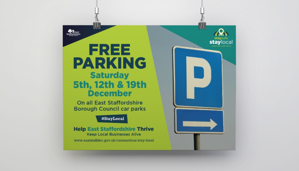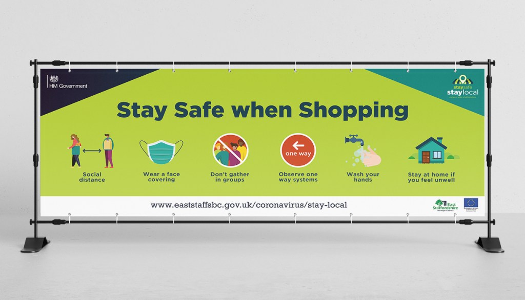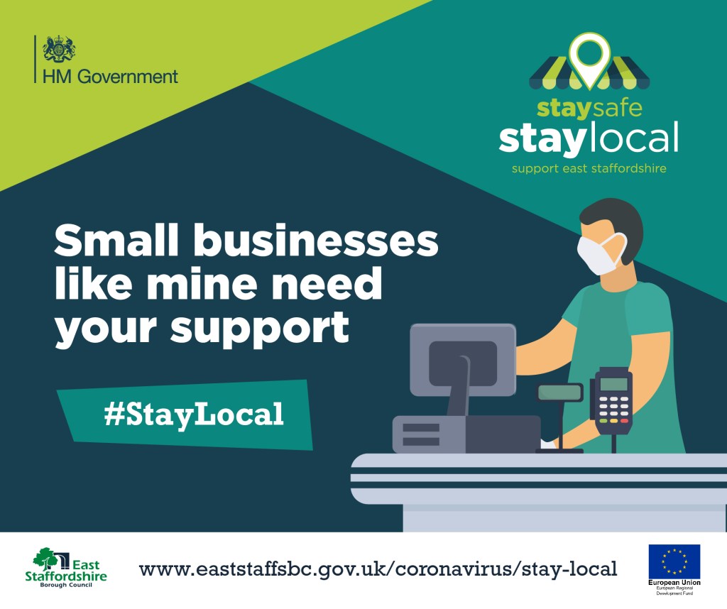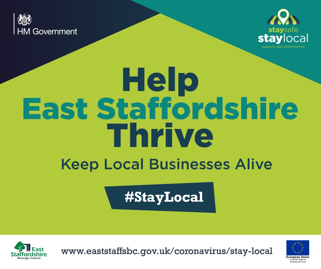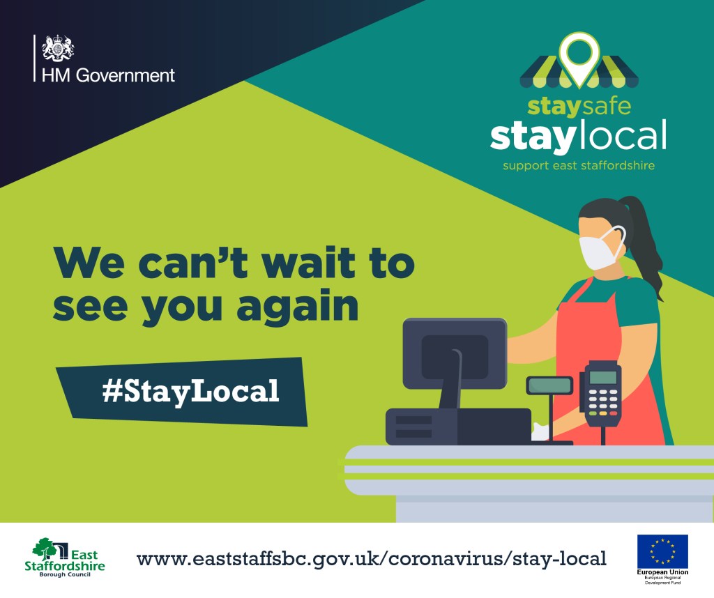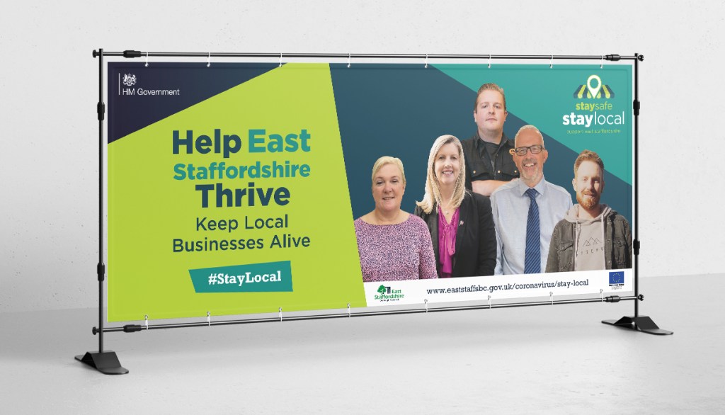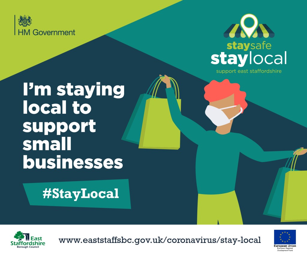 The #StayLocal campaign features posters, banners, outdoor media, social media graphics, shopping bags, face coverings, promotional videos and case studies for local businesses and local residents to use to show their support for East Staffordshire.