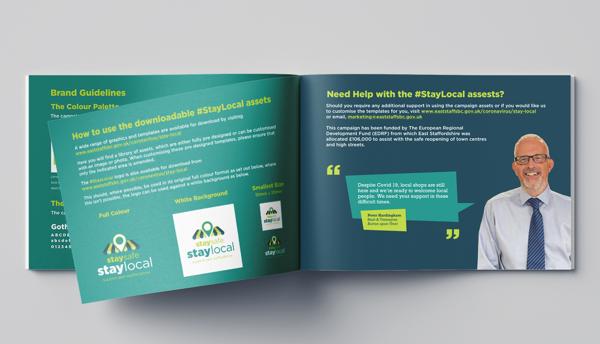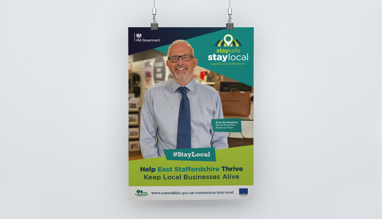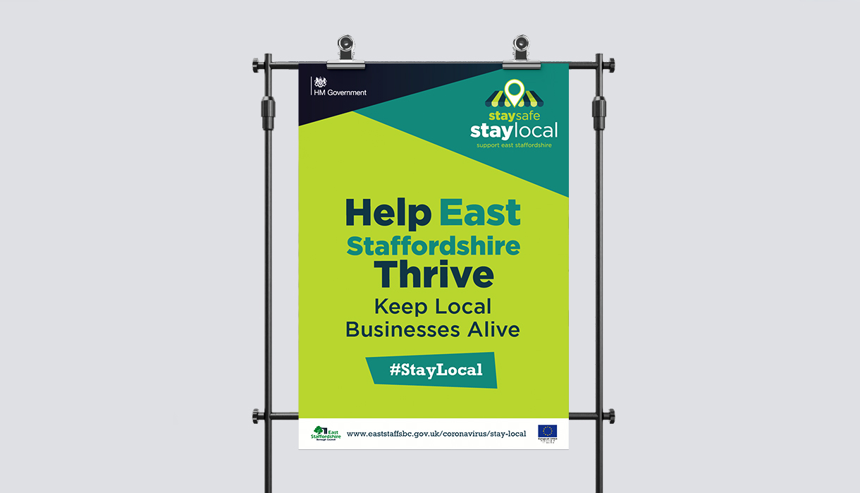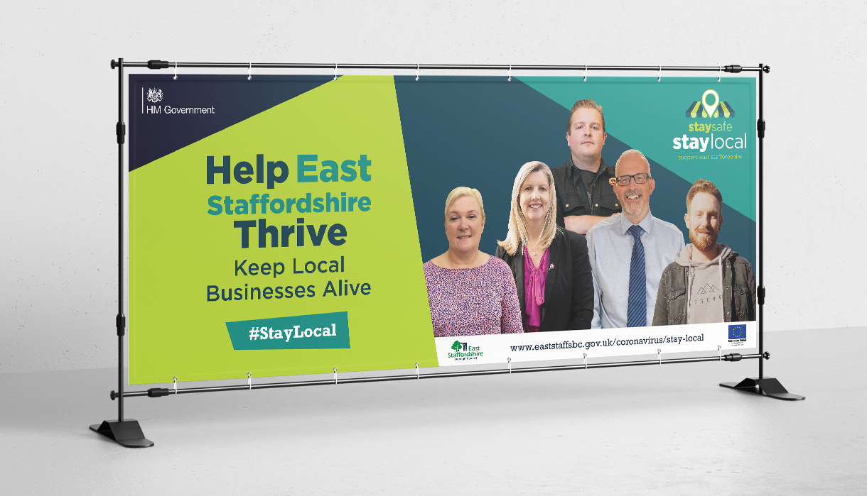 The #StayLocal campaign features posters, banners, outdoor media, social media graphics, shopping bags, face coverings, promotional videos and case studies for local businesses and local residents to use to show their support for East Staffordshire.